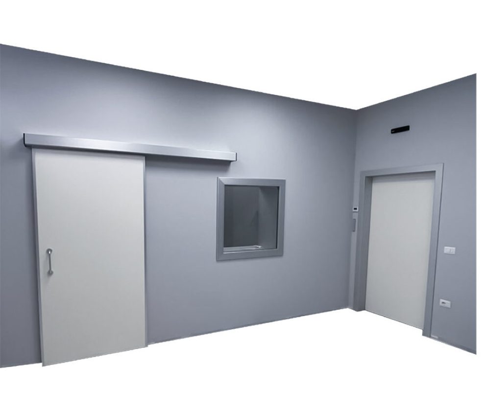 Schermatura di pareti (antix), porte e finestre per ridurre le radiazioni provenienti da macchine radiogene e sostanze radioattive.
