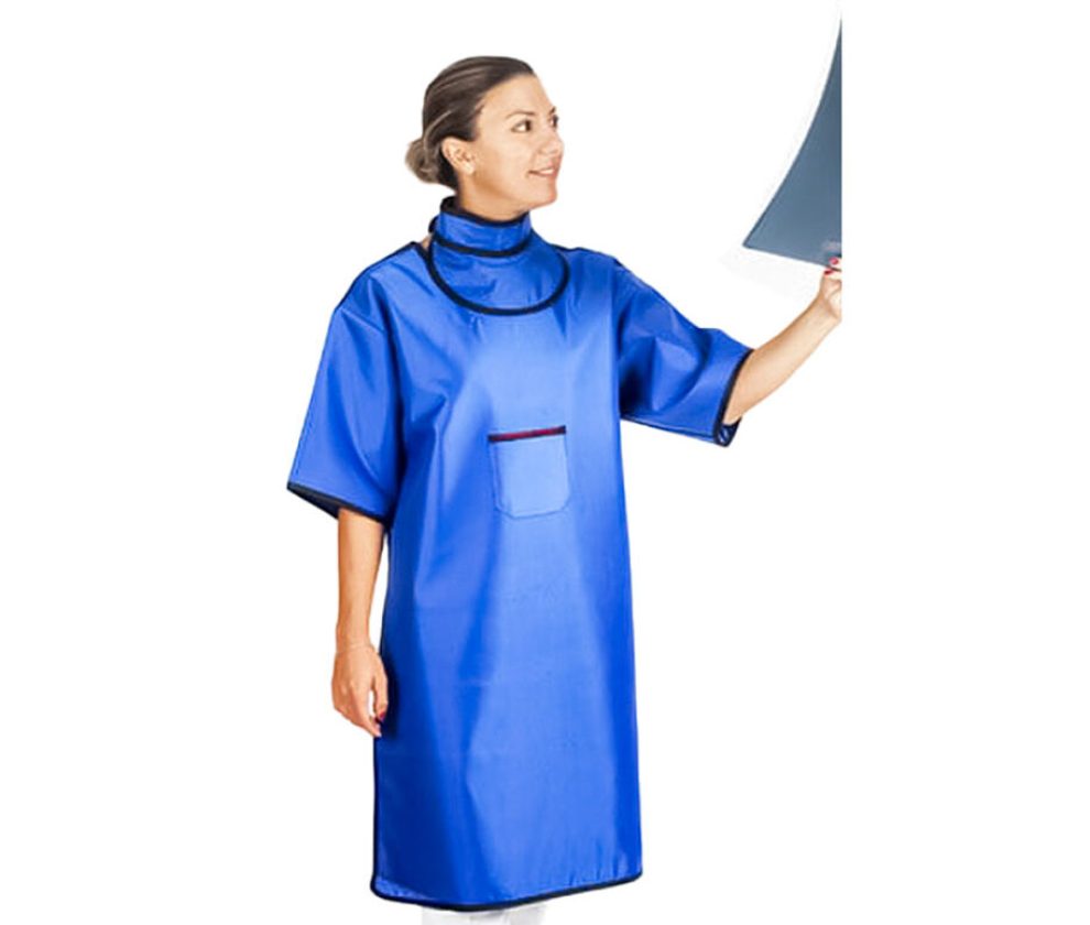 Dispositivi di protezione personali che includono grembiuli, collari per la tiroide, occhiali e guanti. Grembiuli...