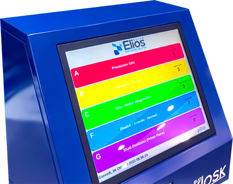 Attraverso i totem digitali Elios dotati del modulo Elios Kiosk è possibile gestire tutte le fasi di accoglienza, attesa e informazione dei pazienti, dall’ingresso all’uscita delle strutture, dall’espletamento delle formalità burocratiche ai pagamenti.
