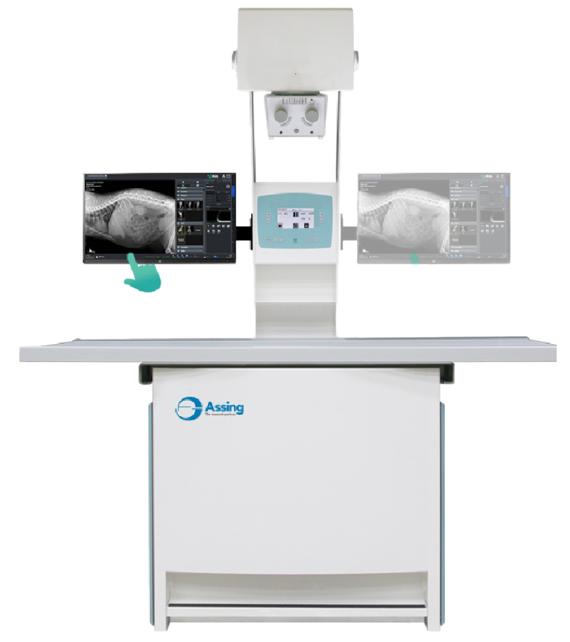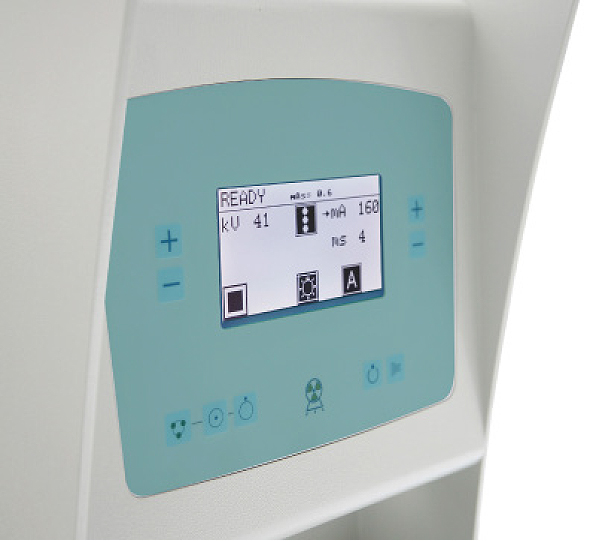Il monitor touch screen a bordo permette innanzitutto di variare i parametri con un semplice tocco e soprattutto di avere l’immagine radiografica istantaneamente; questo è particolarmente utile nel caso di esami di diagnostica della displasia dell’anca.