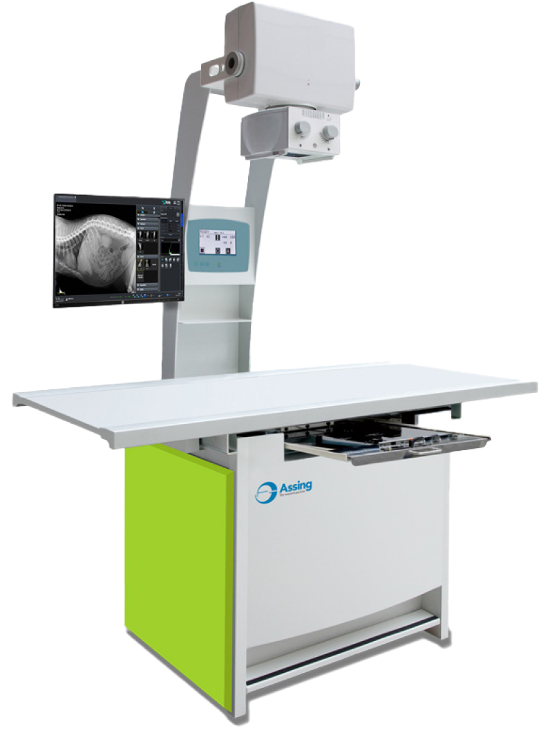 Tavolo radiologico veterinario con generatore monoblocco montato all’interno della macchina. Grazie alle sue caratteristiche di ingombro, all’alta frequenza e alle elevate performance, questo sistema radiologico è espressamente studiato per l‘utilizzo in ambulatori veterinari.